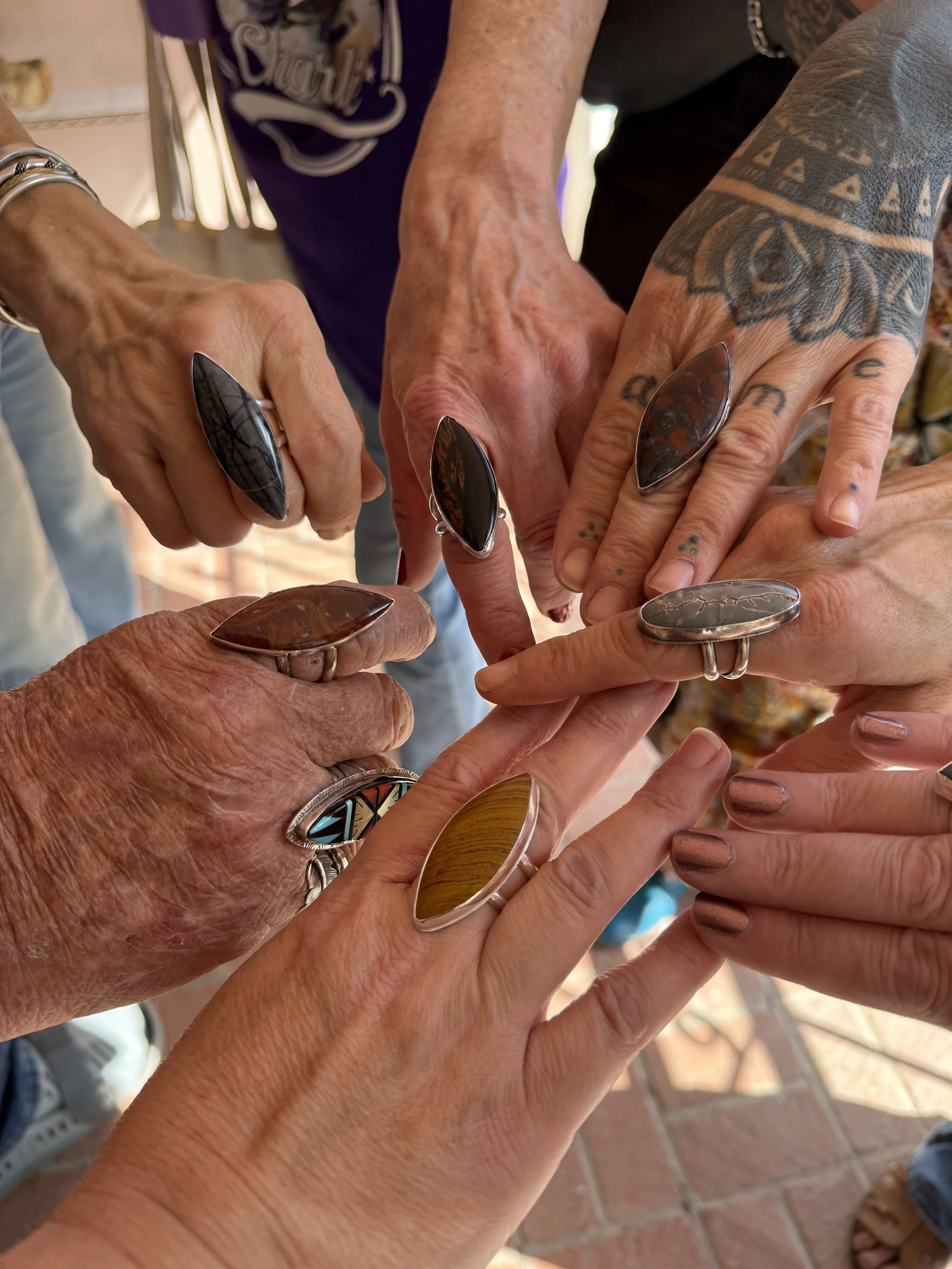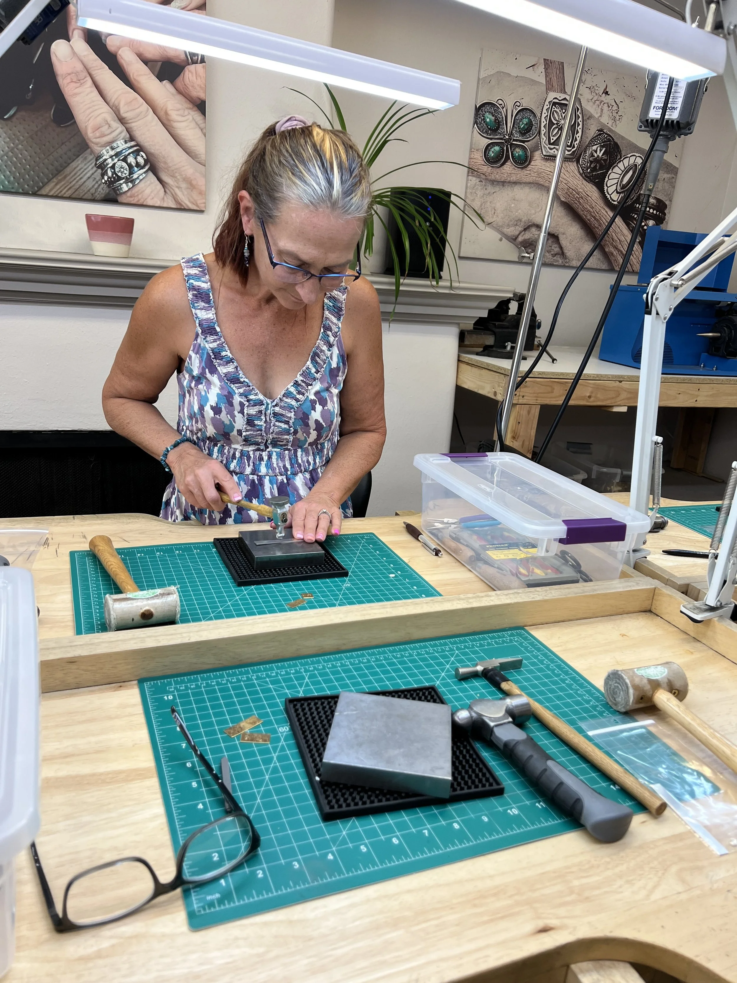 When you combine sterling silver, desert-hued stones, and a creative atmosphere, something special happens. At our recent "Make it at Meltdown" Teardrop Wrap Ring class, students experienced the joy of hands-on jewelry making while crafting their own adjustable silver rings. Inspired by the colors of the New Mexico landscape, each piece featured vibrant stones like turquoise and warm earth tones. The workshop was filled with laughter, the rhythmic sound of hammers, and the proud smiles of students as they completed their one-of-a-kind rings. Perfect for solo creatives or groups, this class delivered a memorable experience and wearable art to match.