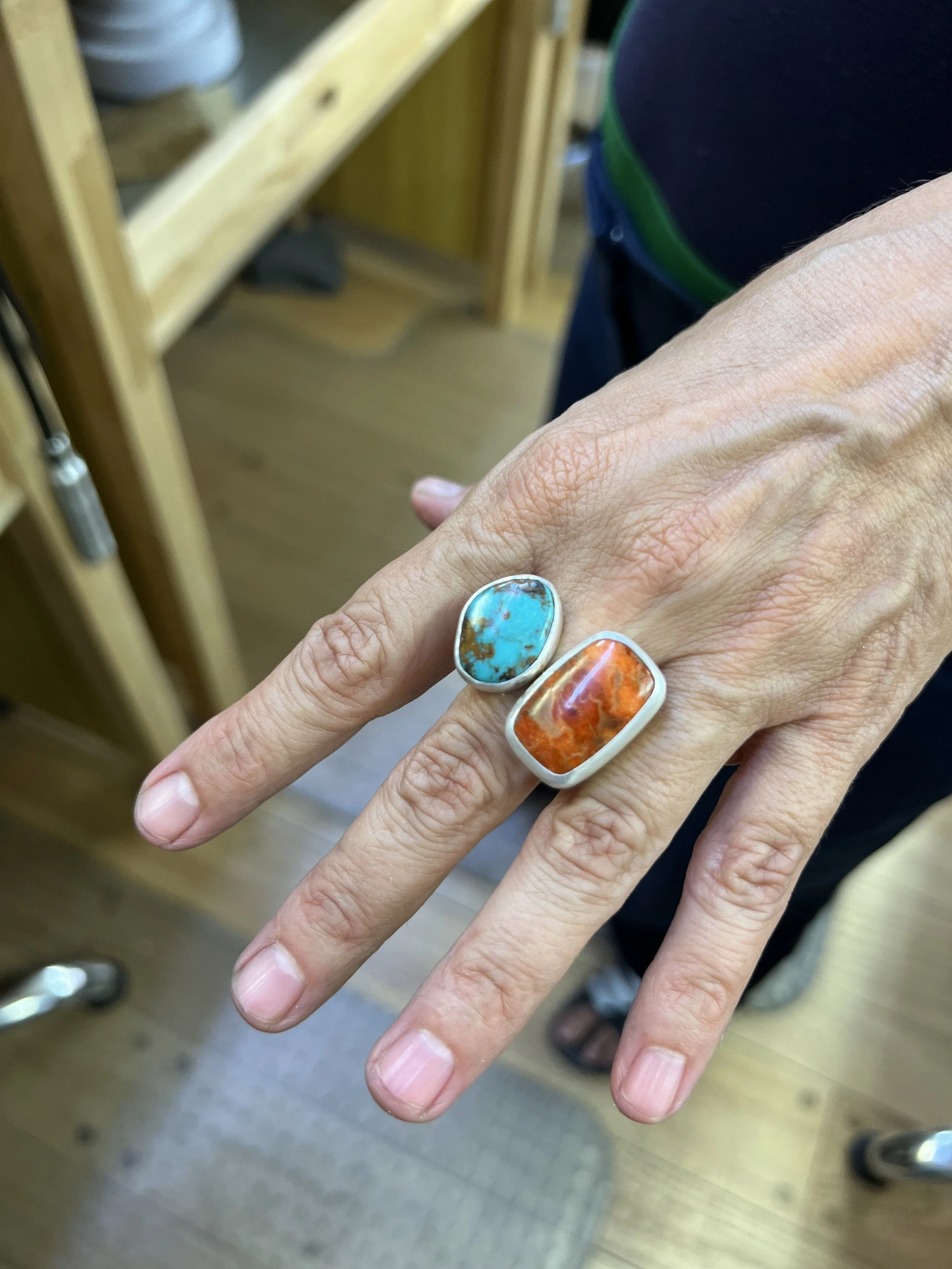 A splash of turquoise, a spark of carnelian, and a Sunday filled with silverwork—this private session with Iris brought double the color and double the creativity. From the first solder to the final polish, her bold two-stone ring became a wearable work of art.